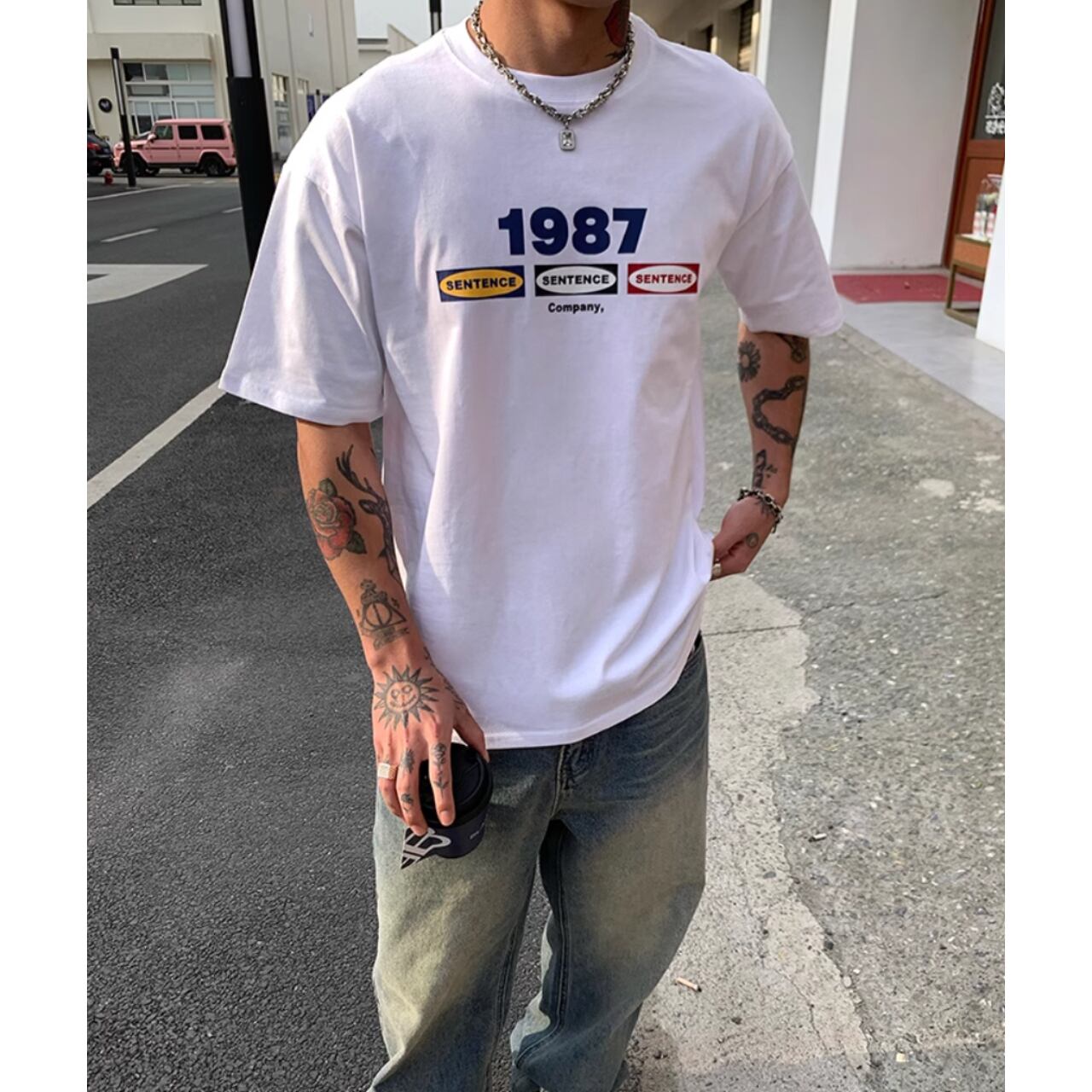 ◇カラー ホワイト グレー ◇サイズ: M 肩幅:52.5cm/胸囲:55cm / 着丈:70cm / 袖丈:21cm L 肩幅:54.5cm/胸囲:57cm / 着丈:72cm / 袖丈:21.5cm XL 肩幅:56.5cm/胸囲: 59cm/ 着丈:74cm / 袖丈:22cm 2XL 肩幅:58.5cm/ 胸囲: 61cm/ 着丈:76cm / 袖丈:22.5cm ◇素材 コットン ◇モデル 身長:176cm、体重61kg、Mサイズ着用