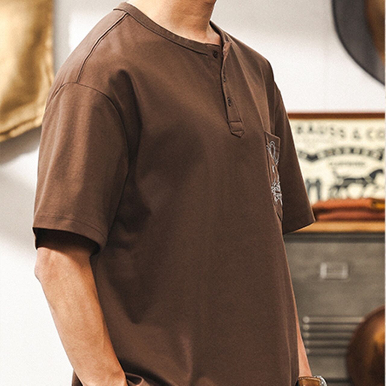 ◇カラー ブラウン ◇サイズ: M 肩幅:51.5cm /胸囲:105cm / 着丈:69cm / 袖丈:21cm L 肩幅:53cm /胸囲:110cm / 着丈:71cm / 袖丈:22cm XL 肩幅:54.5cm /胸囲:115cm / 着丈:73cm / 袖丈:22.5cm 2XL 肩幅:56cm / 胸囲:120cm / 着丈:75cm / 袖丈:23cm 3XL 肩幅:57.5cm / 胸囲:125cm / 着丈:76cm / 袖丈:23.5cm 4XL 肩幅:59cm / 胸囲:130cm / 着丈:77cm / 袖丈:24cm ◇素材 コットン