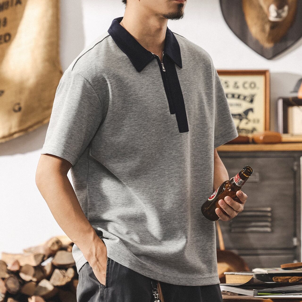 ◇カラー ネイビー グレー ◇サイズ: S 肩幅:37.6cm / 胸囲:102cm / 着丈:66cm / 袖丈:17.8cm M 肩幅:38.8cm / 胸囲:106cm / 着丈:68cm / 袖丈:18.4cm L 肩幅:40cm / 胸囲:110cm / 着丈:70cm / 袖丈:19cm XL 肩幅:41.2cm / 胸囲:114cm / 着丈:72cm / 袖丈:19.6cm 2XL 肩幅:42.4cm / 胸囲:118cm / 着丈:74cm / 袖丈:20.2cm 3XL 肩幅:43.6cm / 胸囲:122cm / 着丈:76cm / 袖丈:20.8cm 4XL 肩幅:44.8cm / 胸囲:126cm / 着丈:78cm / 袖丈:21.4cm ◇素材 コットン