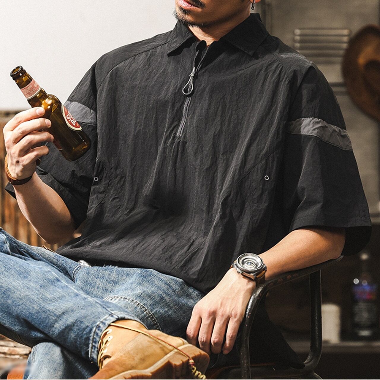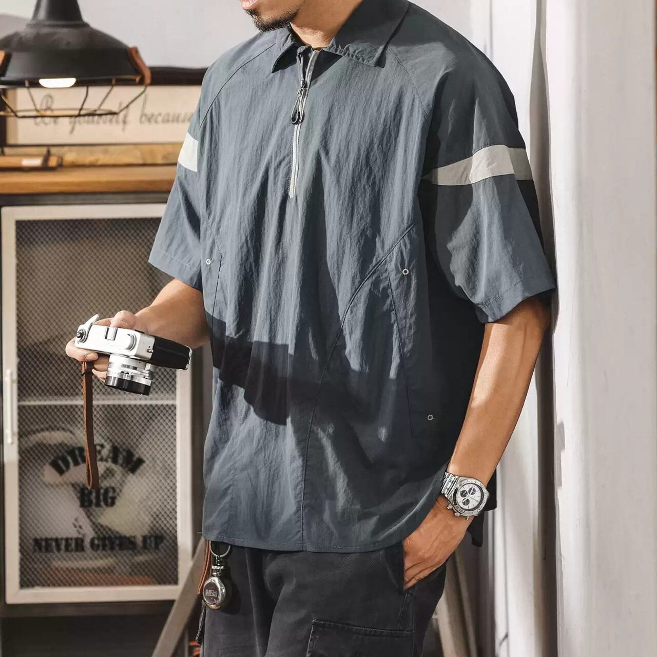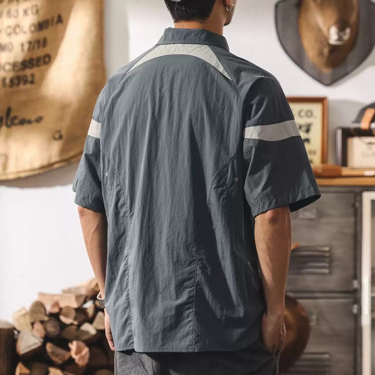 ◇カラー 【A】グレーブルー 【B】グレー 【C】ブラック 【D】パープル ◇サイズ: M 肩幅:50cm / 胸囲:112cm / 着丈:69cm / 袖丈:24cm L 肩幅:52cm / 胸囲:120cm / 着丈:71cm / 袖丈:24.5cm XL 肩幅:54cm / 胸囲:124cm / 着丈:73cm / 袖丈:25cm 2XL 肩幅:56cm / 胸囲:128cm / 着丈:75cm / 袖丈:25.5cm 3XL 肩幅:58cm / 胸囲:132cm / 着丈:77cm / 袖丈:26cm 4XL 肩幅:60cm / 胸囲:136cm / 着丈:79cm / 袖丈:26.5cm ◇素材 ナイロン