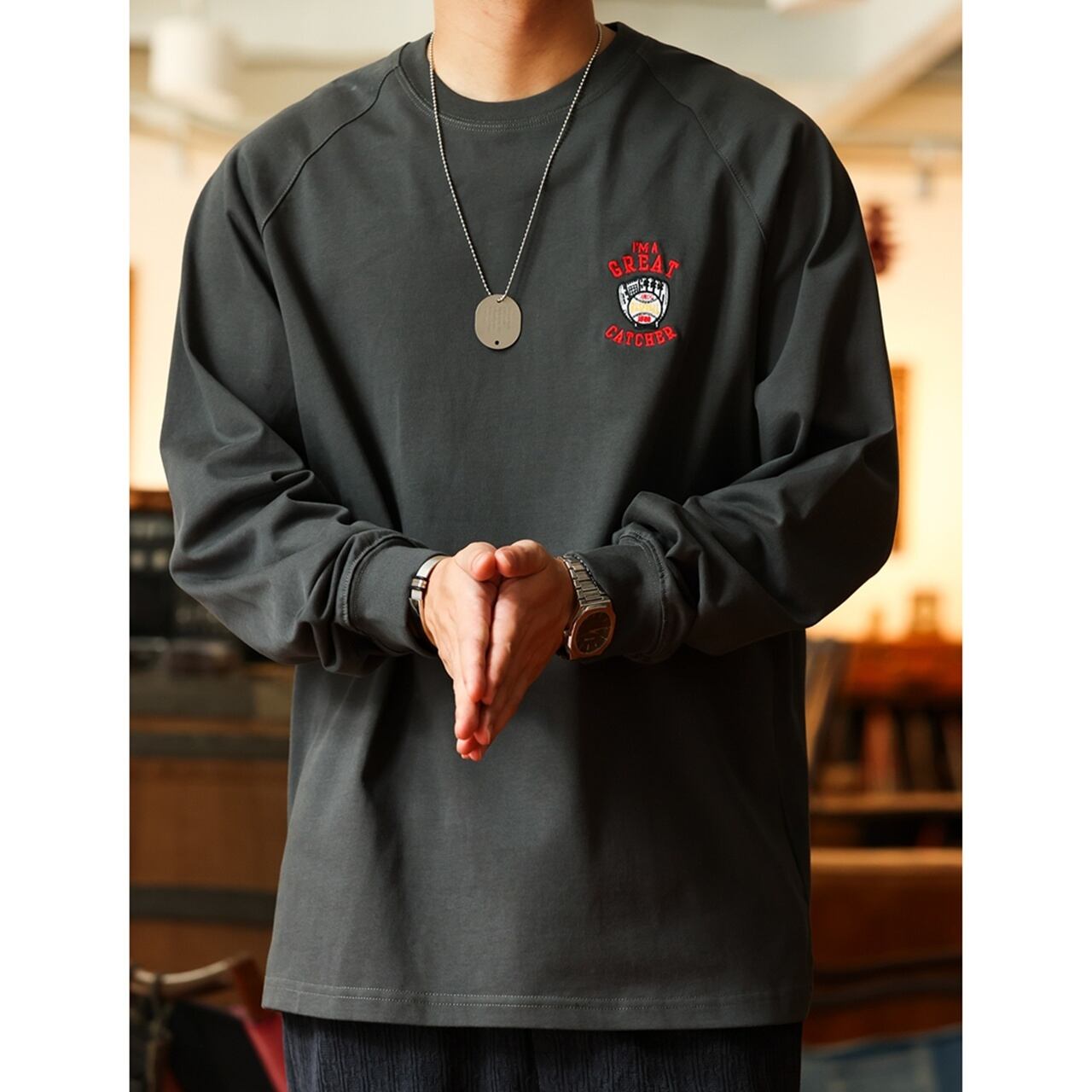 ベースボール刺繍長袖Tシャツ 220186