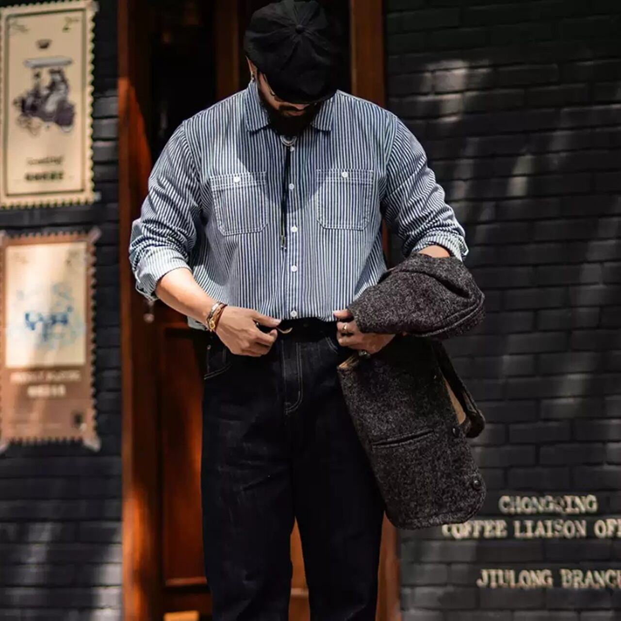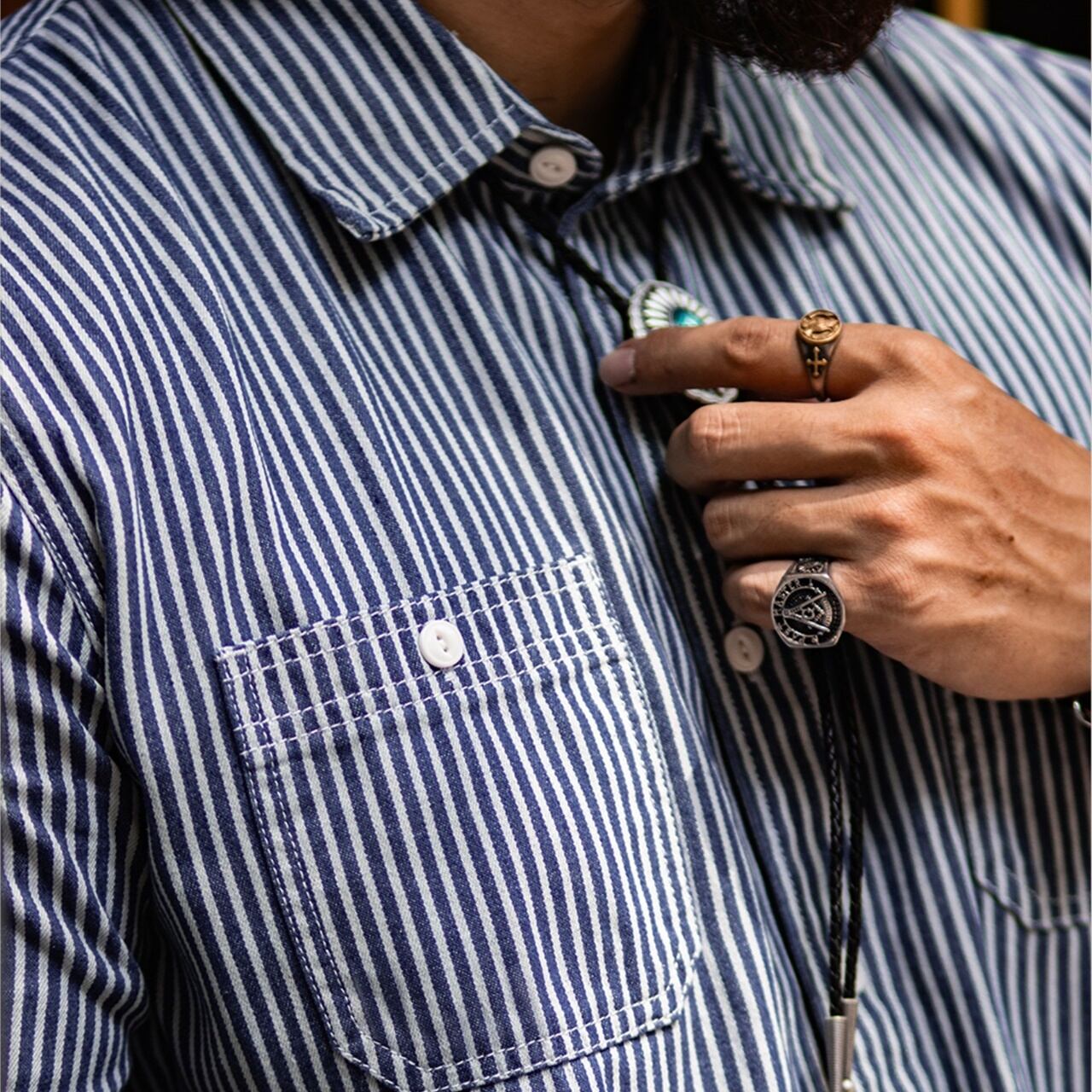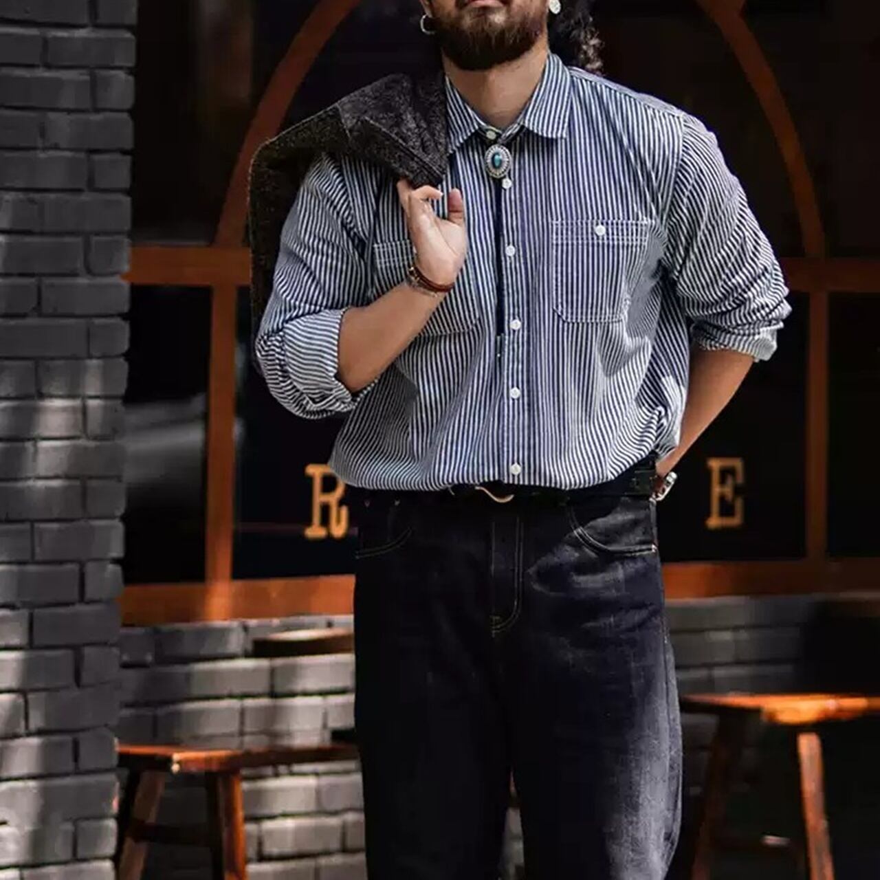 レトロストライプワークシャツ 220370