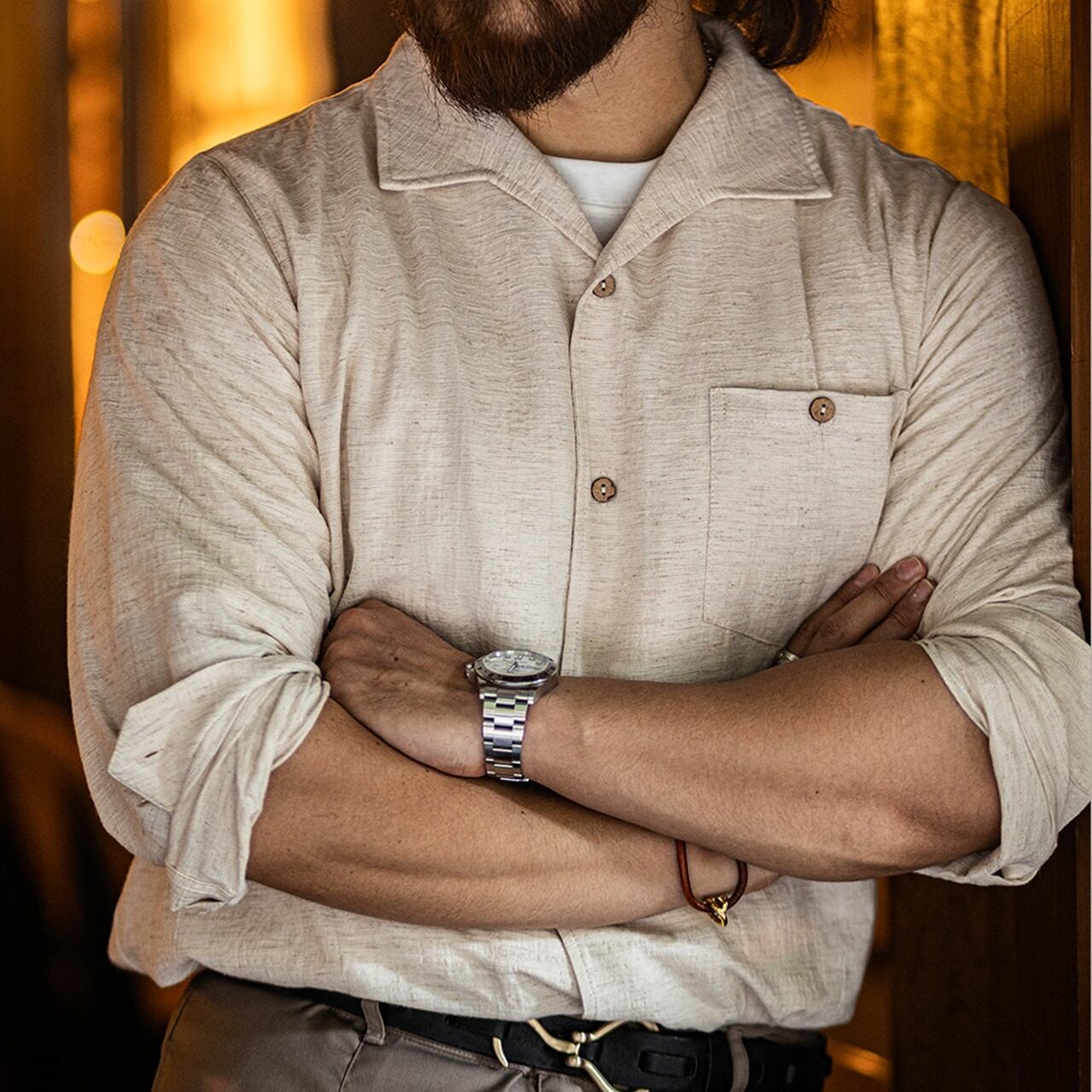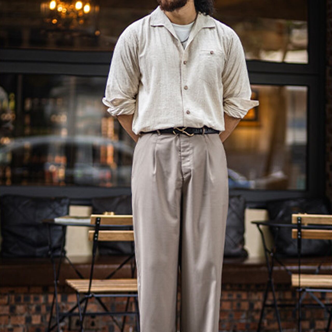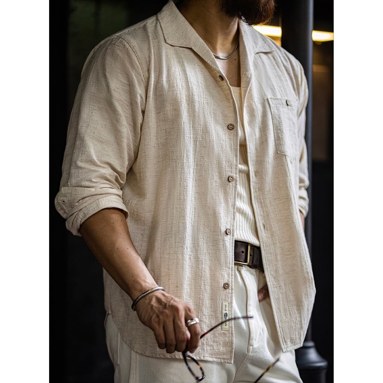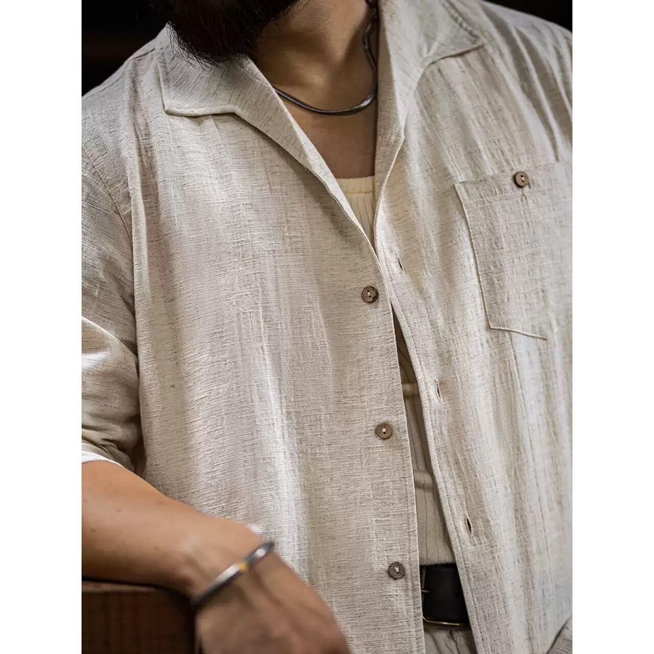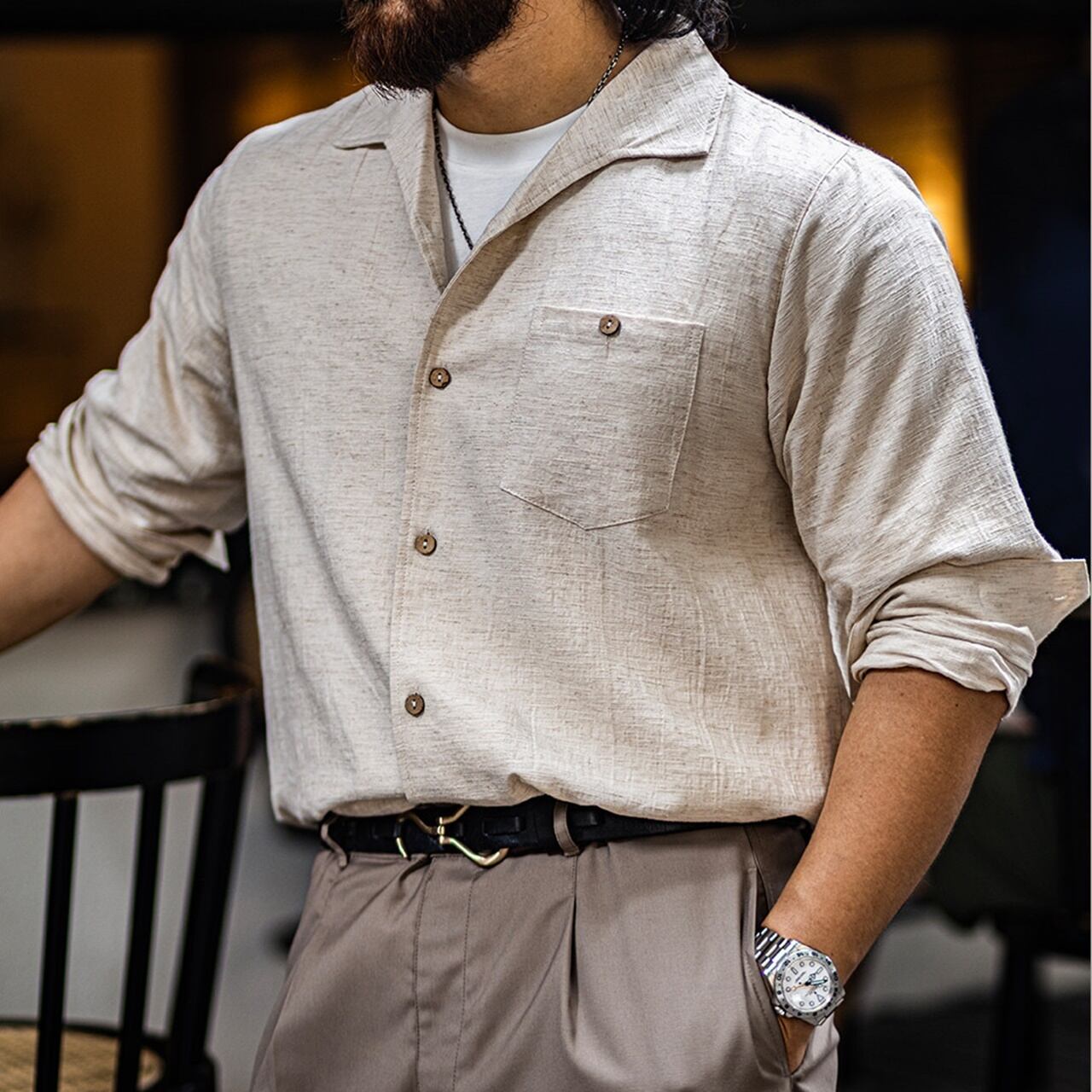 レトロ長袖ジャガードシャツ 260131